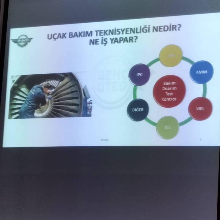 Konferans Uçak Bakım Teknisyeni Yıldıray BİLİR tarafından sunum yapılarak gerçekleşti. Lise son sınıf öğrencilerinin ilgiyle izledikleri konferans soru cevaplarla renklendi. Bugün bizleri katılımlarıyla onurlandıran AFADER Yönetim Kurulu Başkanı Mehmet Bilir ve sunumu yapan Yıldıray BİLİR'e teşekkür ederiz.